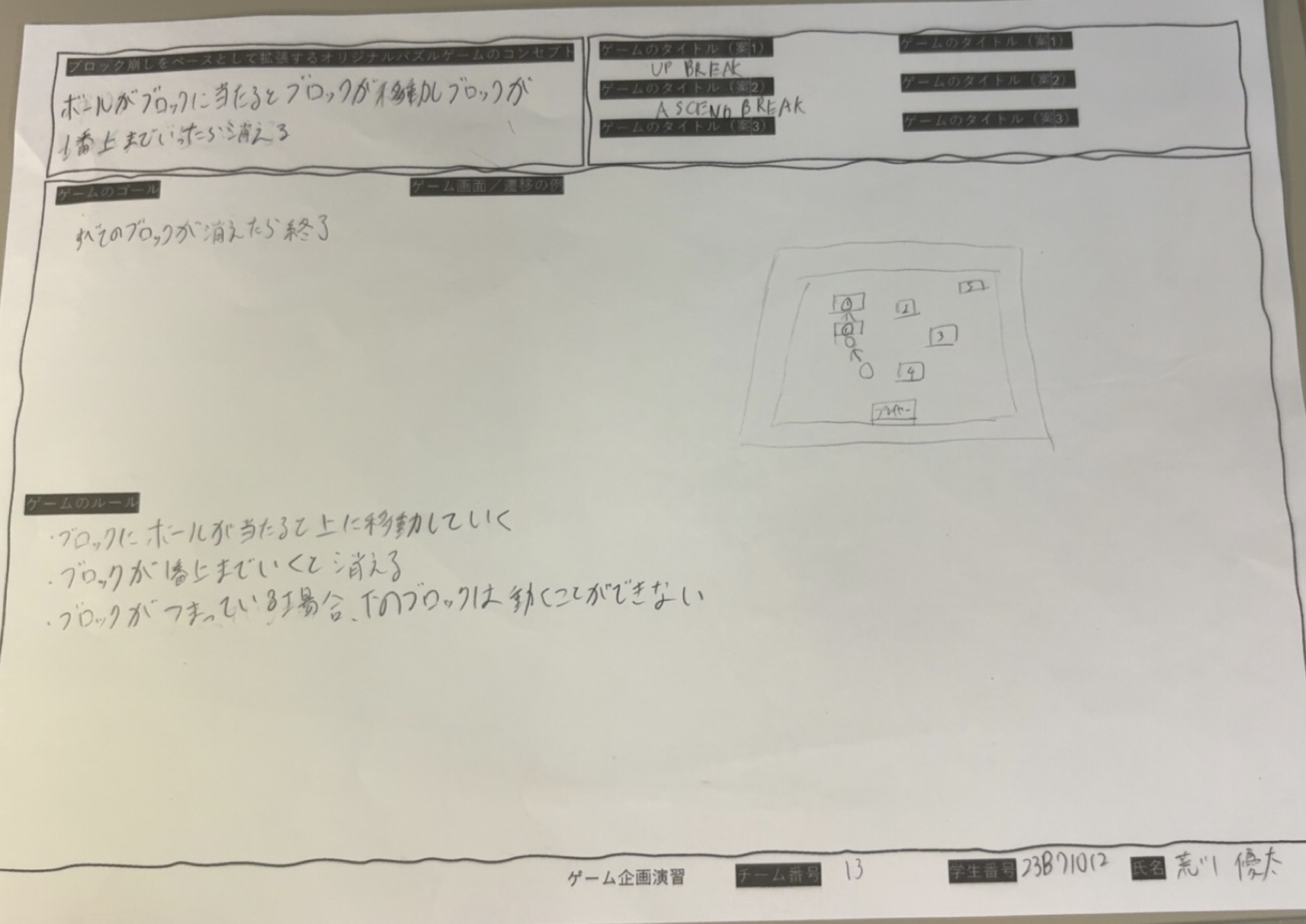 ボールを当ててブロックを上に移動させるゲーム